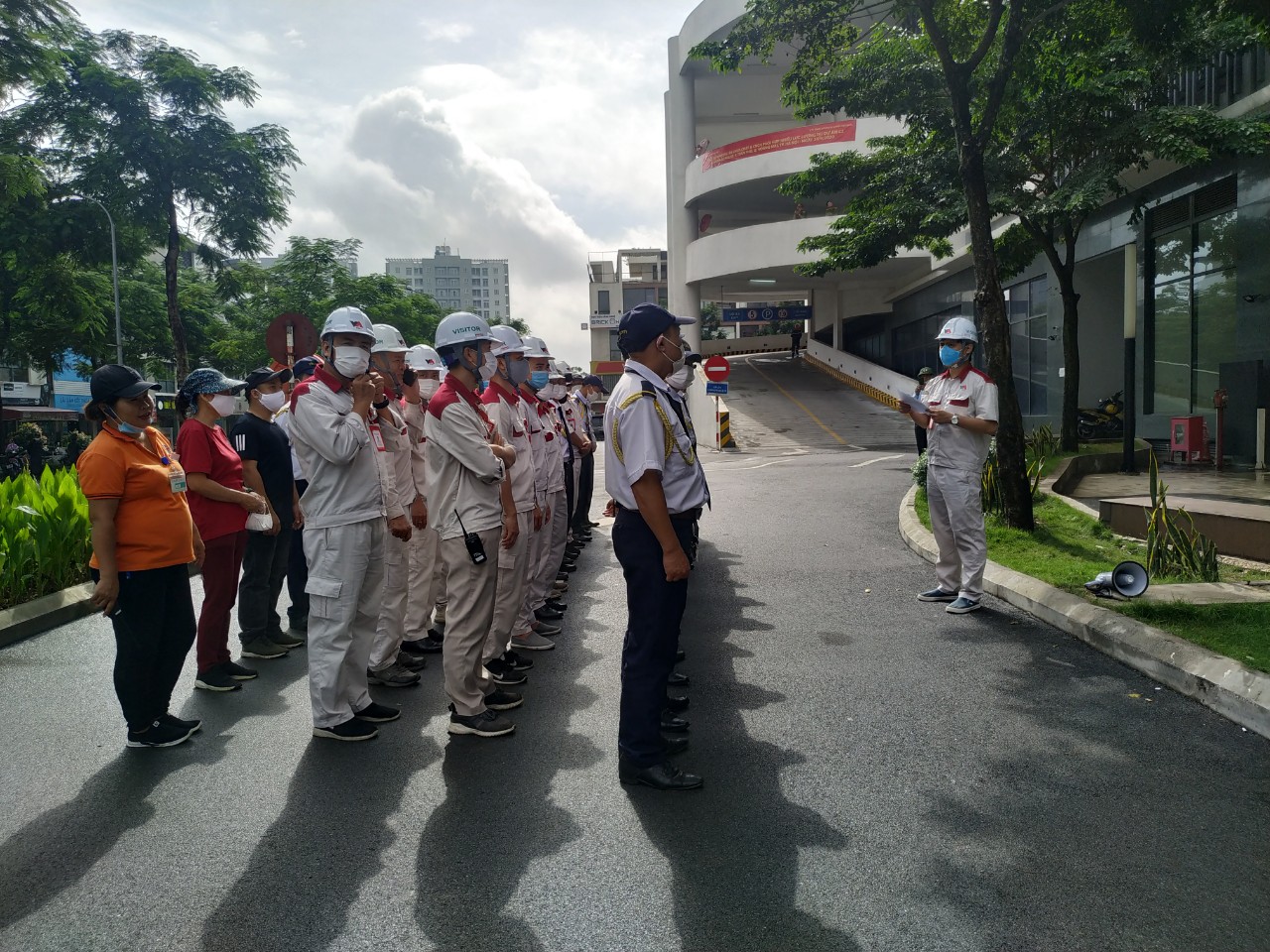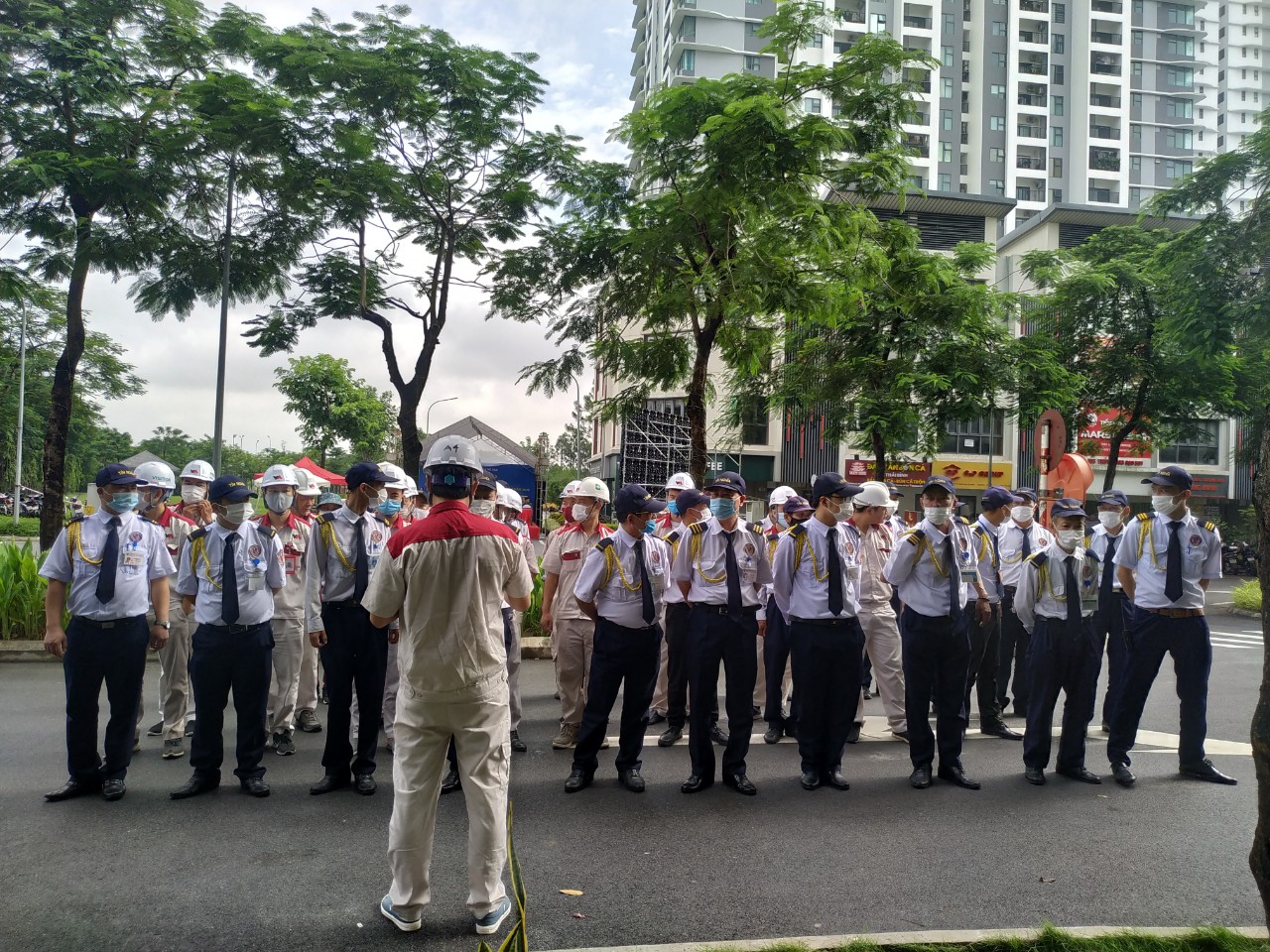 Dự buổi diễn tập có các đồng chí thường trực UBND Quận; các đồng chí trực thuộc phòng Cảnh sát PCCC&CNCH Quận, Phường; đại diện Công ty GLVN Ông Dennis Ng – Tổng Giám đốc GLVN cùng đội ngũ cán bộ nhân viên BQL Việt An – đơn vị chịu trách nhiệm vận hành quản lý tòa nhà.