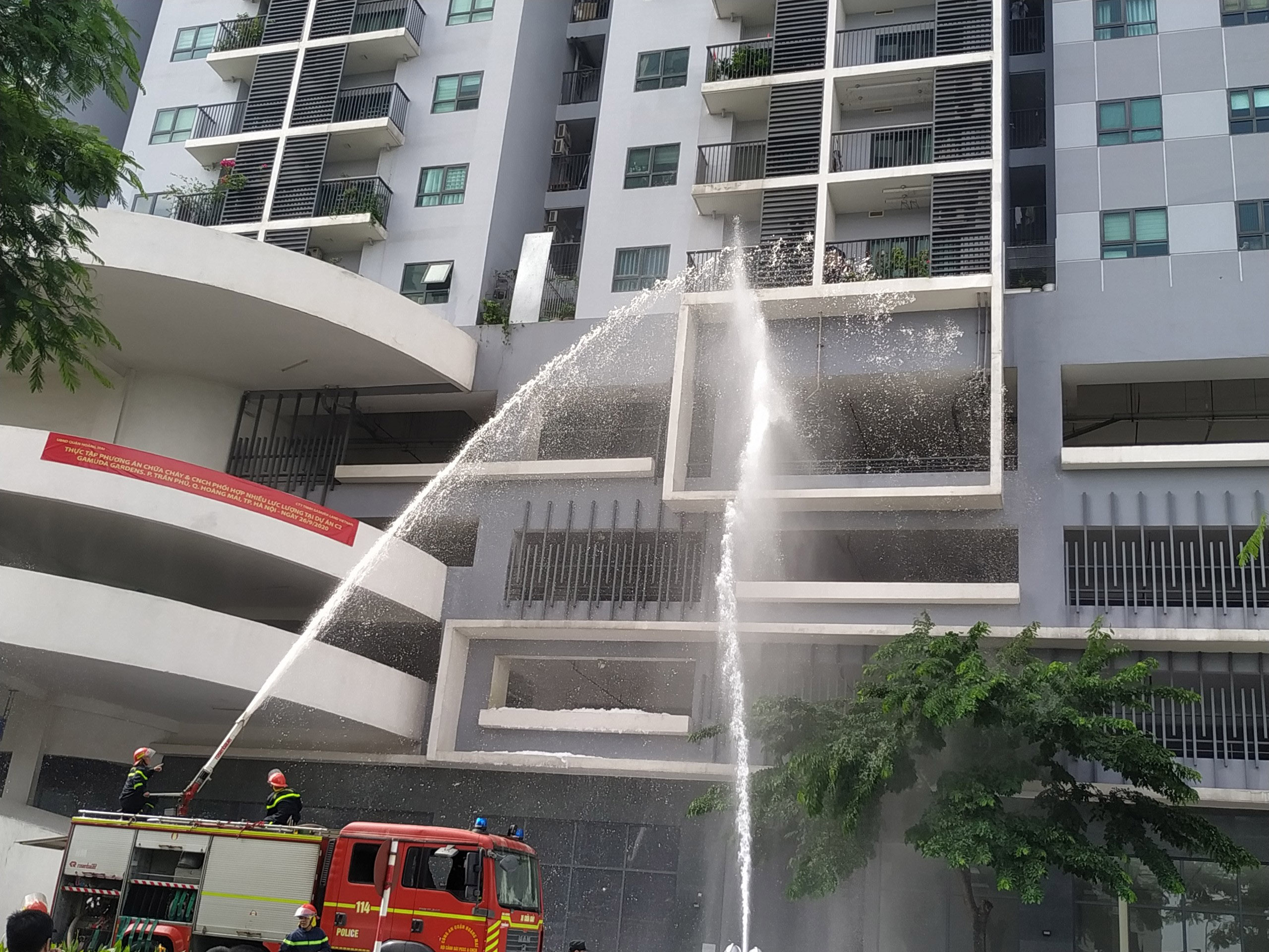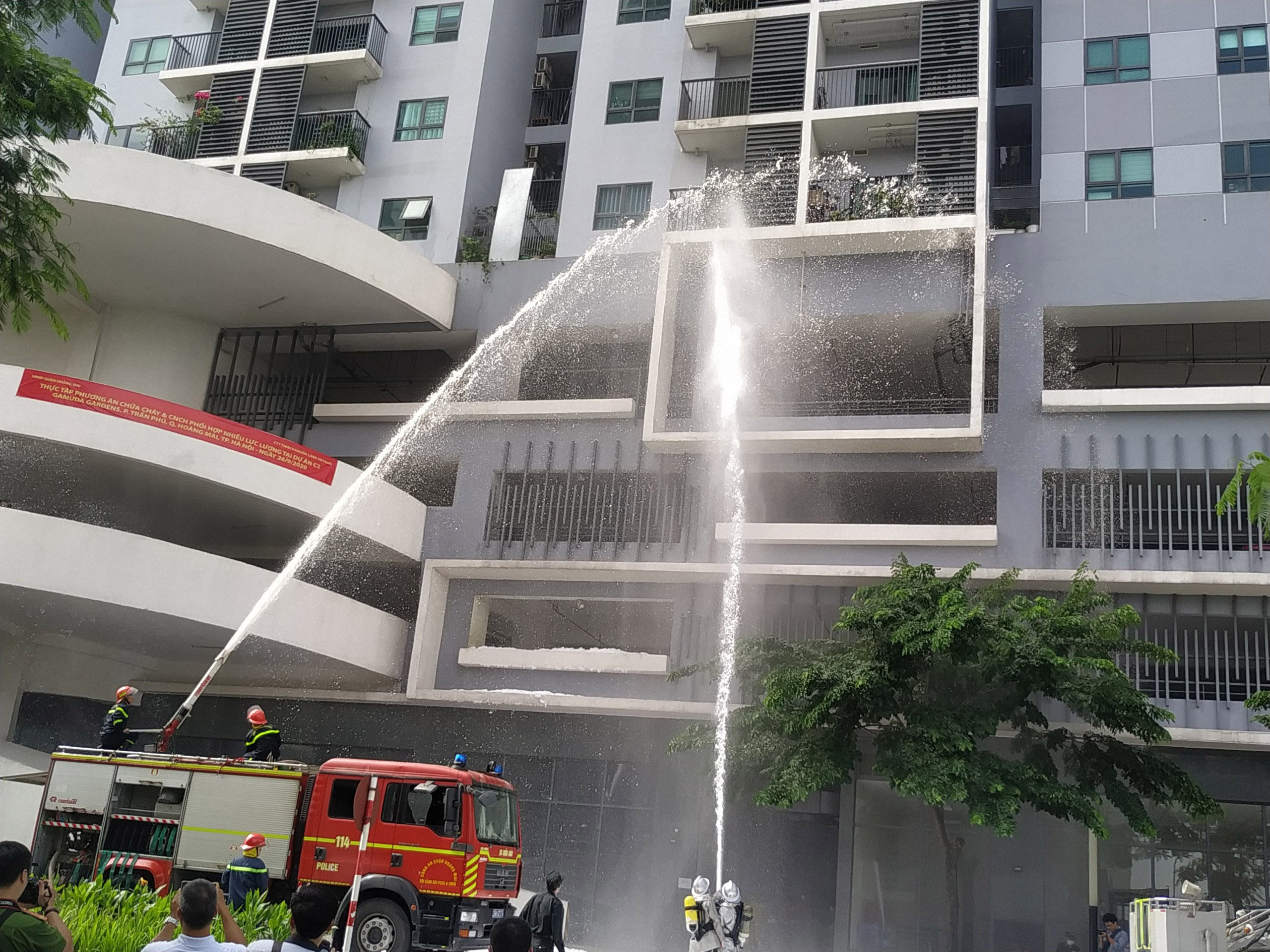 Diễn tập phương án PCCC và cứu hộ, cứu nạn tại khu chung cư cấp Quận