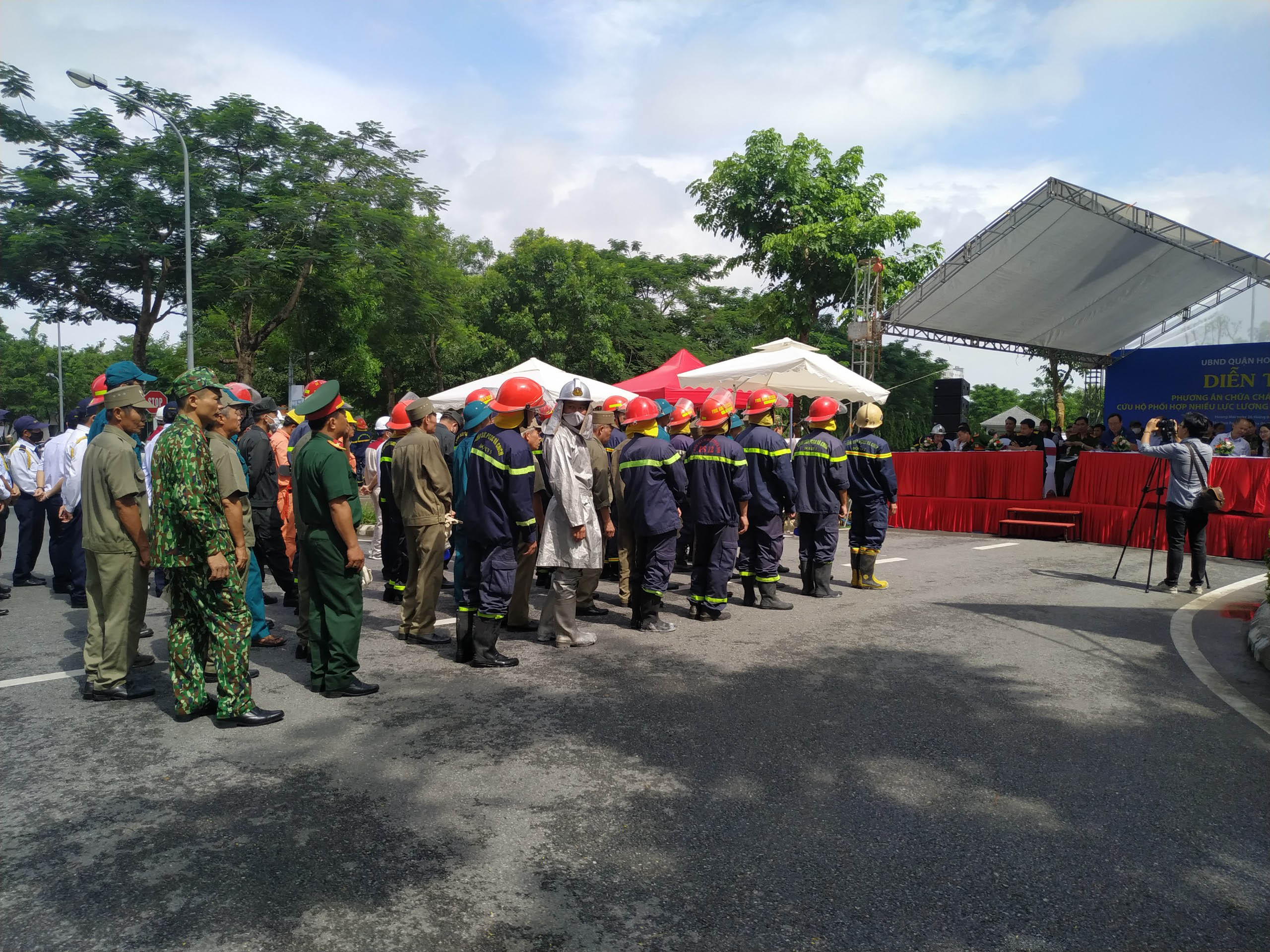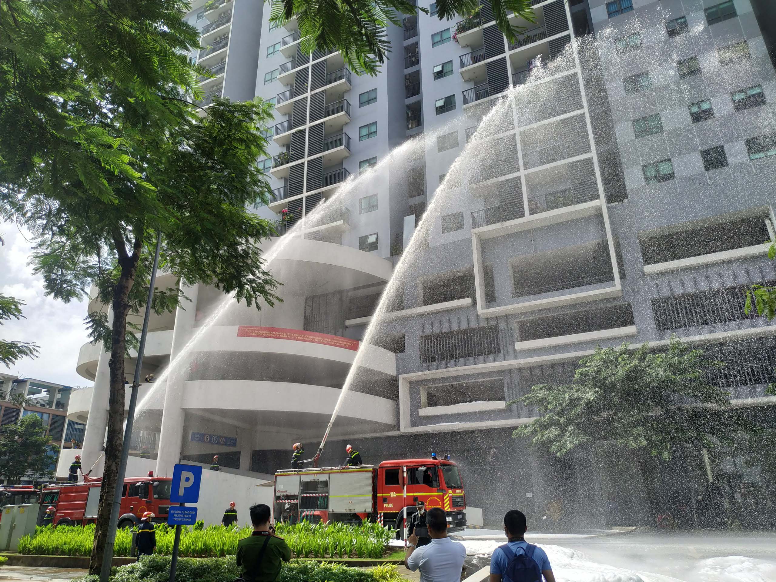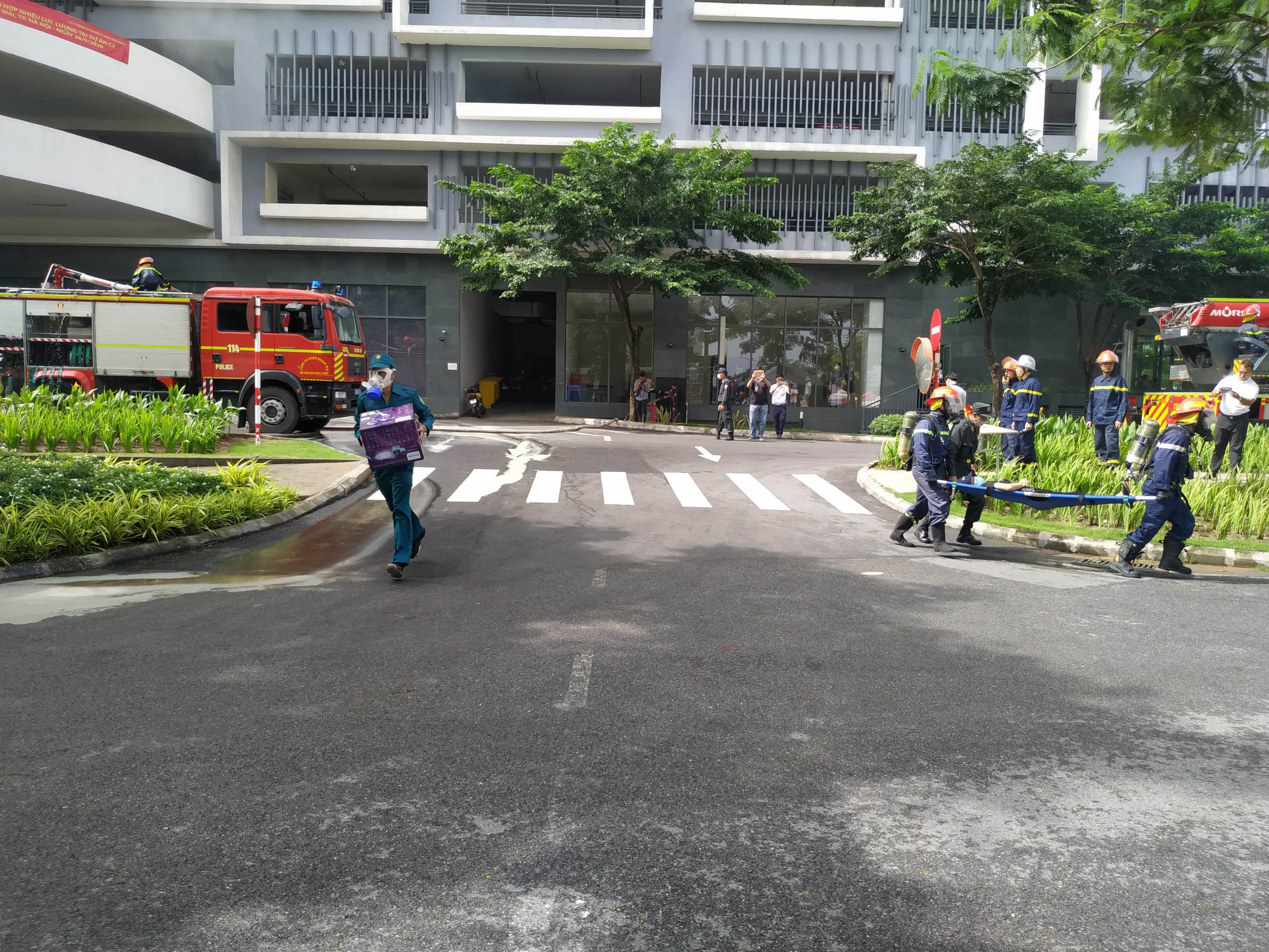 Tình huống giả định để các đơn vị tham gia diễn tập là hồi 09h30’ ngày 26/9/2020 xảy ra cháy tại khu vực để xe ô tô thuộc tầng 2 của Tòa nhà The Two Residence thuộc KĐT Gamuda. Tại thời điểm xảy ra cháy, khu vực tầng 2 chứa khoảng 200 xe ô tô các loại; khu vực tòa nhà có mặt khoảng 2000 người sinh sống và làm việc; khi hệ thống báo cháy được kích hoạt có khoảng 10 người mắc kẹt trong đám cháy…. Ngay sau khi nhận được tin báo, CA Quận nhanh chóng điều động lực lượng, phương tiện kịp thời phối hợp lực lượng PCCC Quận và cơ sở tổ chức CC&CNCH. Sau khoảng 30 phút triển khai, những nạn nhân mắc kẹt trong đám cháy được các lực lượng diễn tập cứu thoạt; đám cháy được dập tắt hoàn toàn.