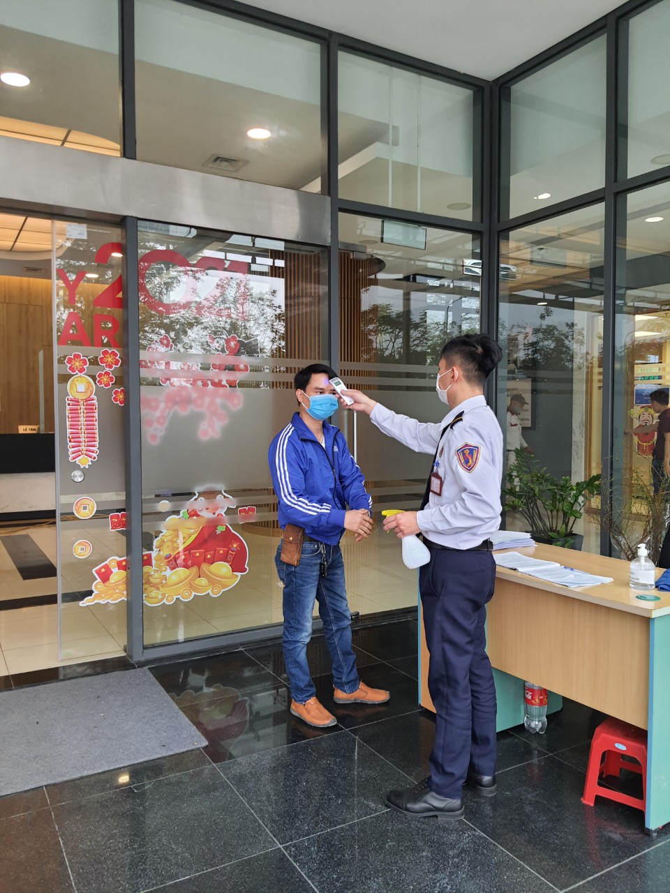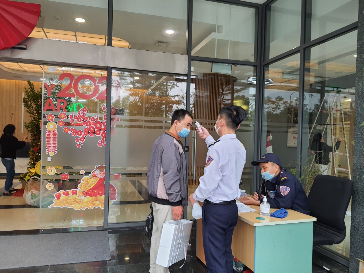 Bên cạnh công tác chuẩn bị đón xuân Tân sửu, BQL tòa nhà vẫn thường xuyên nhắc nhở cư dân, cùng nhân viên tòa nhà thực hiện nghiêm túc việc đeo khẩu trang và đo thân nhiệt đảm bảo cư dân đón Tết an toàn, vui vẻ giữa thời điểm dịch bệnh Covid-19 diễn biễn phức tạp.